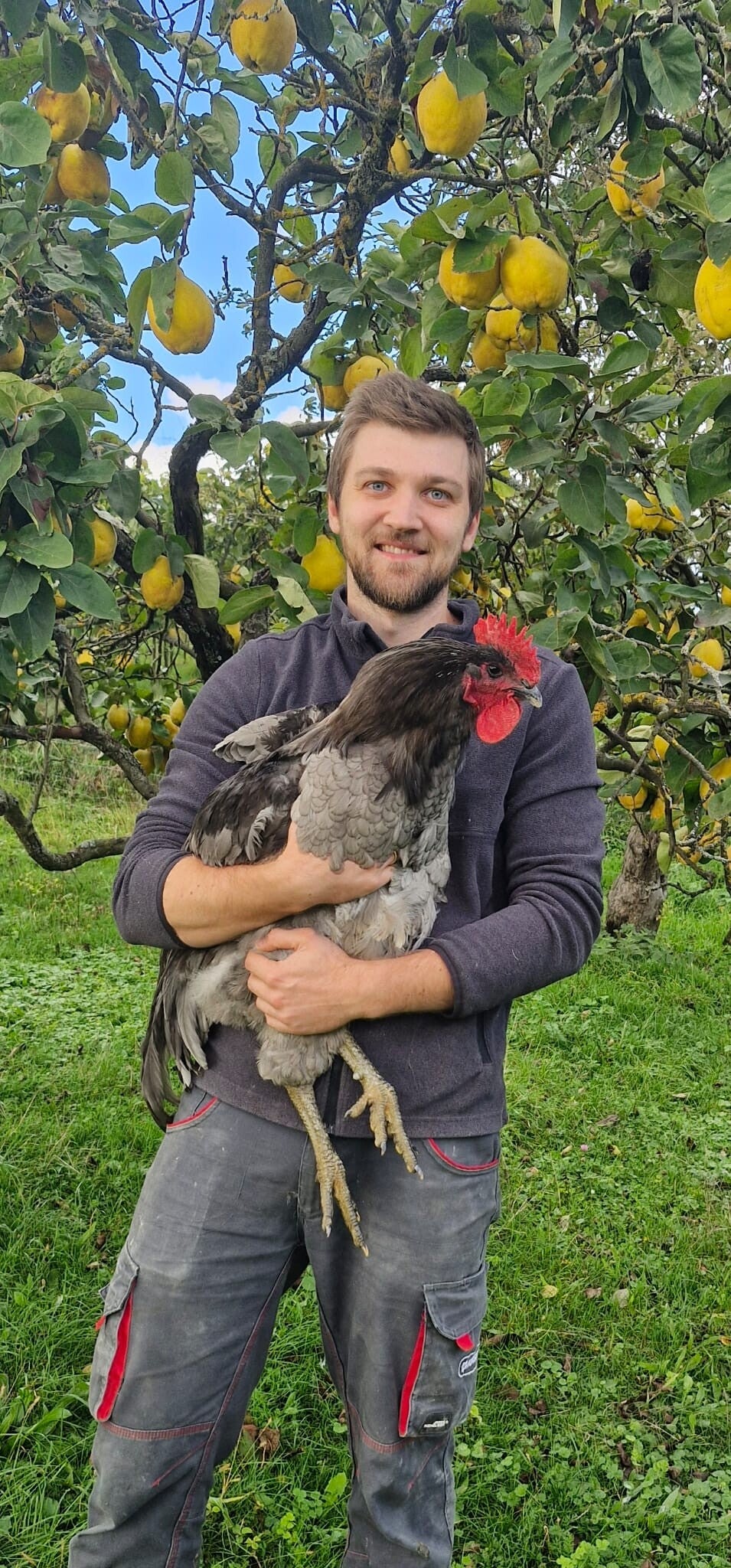 Ich bin Daniel Harter und betreibe eine Hühnerfarm mit Freilandhaltung sowie eine Schafherde in Stratzing. Meine Leidenschaft für die Hühnerhaltung entstand durch die Übernahme der Legehennen von meinem Vater. Ich sehe meine Tiere als Partner, die mir täglich bei der Arbeit helfen. Meine Schafe halten den Obstgärten frei von Unkraut und fördern die Biodiversität, während meine Hühner mir jeden Tag frische Eier liefern.